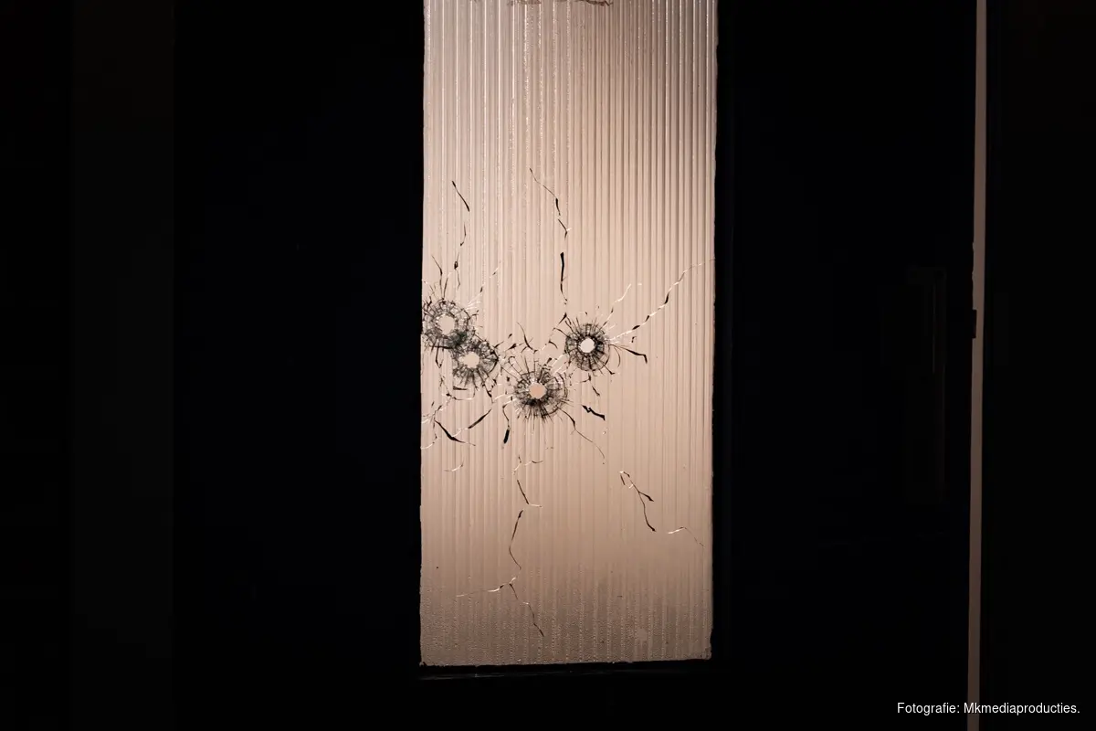 ROTTERDAM - Op de Dordtsestraatweg is op een rijtjeswoning geschoten. In het raam van de voordeur zitten vier kogelgaten.