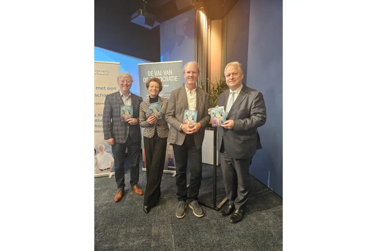 DEN HAAG - Gisteren vond in perscentrum Nieuwspoort de feestelijke lancering plaats van De val van de democratie van Rutger Middendorf, uitgegeven door Uitgeverij Doornwater. De auteur werd geïnterviewd door Hanneke van de Water (uitgeverij). Erik Ziengs (voormalig Tweede Kamerlid, VVD) trad op als gastspreker. Aansluitend ging Rob van Doorn (uitgeverij) in gesprek met Ziengs over de stand van de politiek. De avond werd besloten met een borrel en signeersessie. De opkomst was hoog en de reacties uitermate positief.