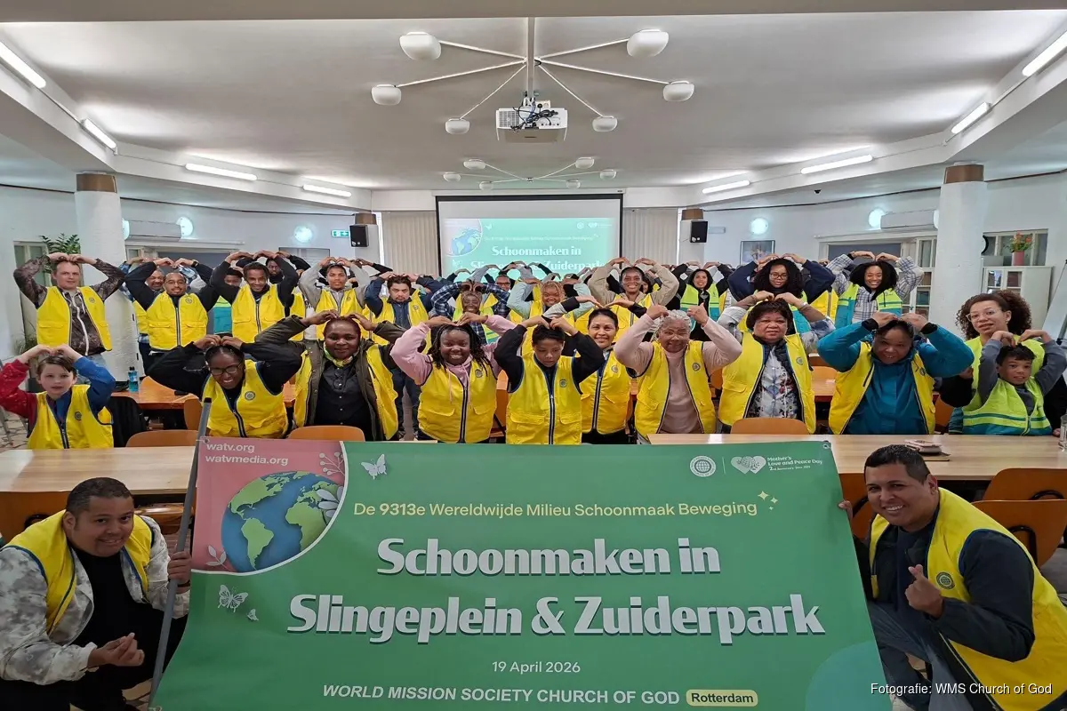 De World Mission Society Church of God (Hoofdpastoor Kim Joo-cheol, hierna te noemen Church of God) hield op zondag 19 April de “9313e wereldwijde milieuopruimingscampagne” in Rotterdam. Ongeveer 55 mensen waaronder kerkleden, hun families en buurtbewoners, verzamelden afval in 49 afvalzakken van 80L van het Slingeplein en het Zuiderpark. De Church of God voert momenteel zowel nationaal als internationaal maatschappelijke activiteiten uit om straten, parken, stranden en rivieroevers schoon te maken. Op dezelfde dag voerde de Church of God ook de milieuopruimingscampagne uit in Brussel (België) en Parijs (Frankrijk).