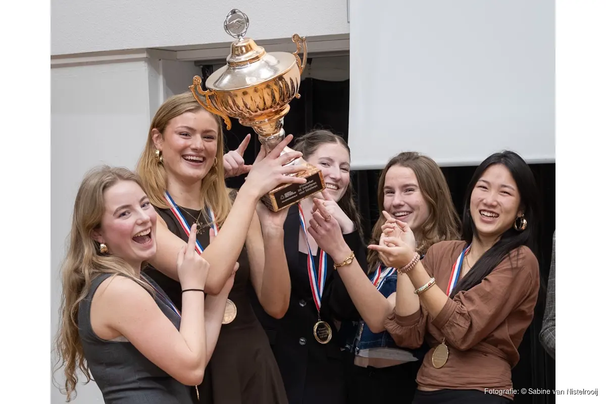 GORINCHEM – Het Johan de Witt-gymnasium uit Dordrecht is afgelopen zaterdag Nederlands Kampioen Debatteren havo/vwo 2025-2026 geworden. Het debatteam laat hiermee de in totaal 100 deelnemende teams achter zich. In het finaledebat over sociale media namen zij het op tegen het Utrechts Stedelijk Gymnasium, dat ervandoor gaat met de zilveren medaille. De finale vond plaats op het Gymnasium Camphusianum in Gorinchem.