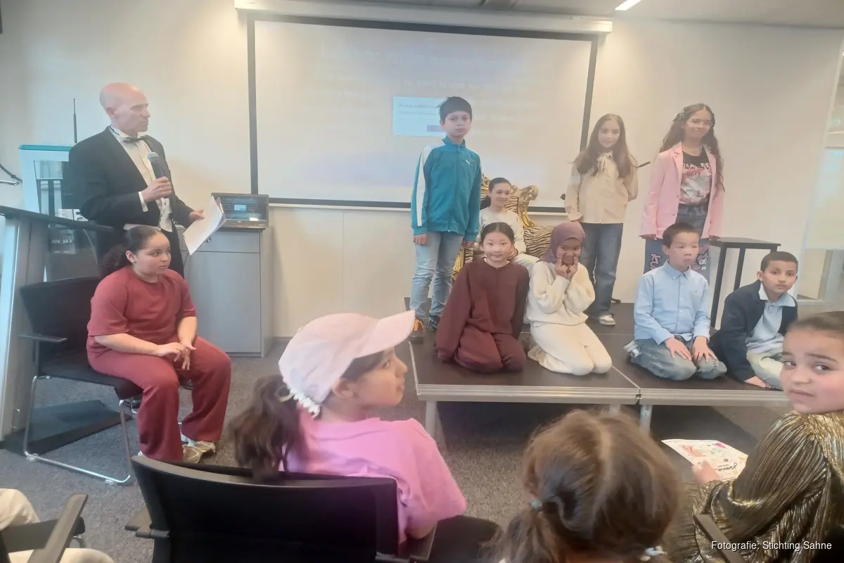 Meer dan 150 kinderen sprongen enthousiast op en reageerden met luid gejuich. De zaal op de vierde verdieping van de Centrale Bibliotheek Rotterdam kleurde die middag vrolijk en levendig.