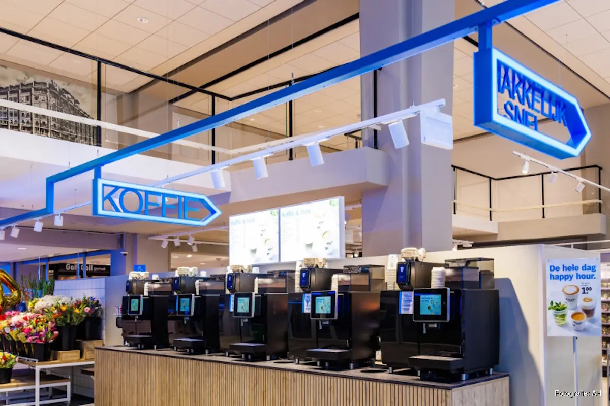 Vanuit de parkeergarage is er rechtstreeks toegang tot de volwaardige Albert Heijn op de benedenverdieping. Hier vinden klanten een compleet assortiment voor alle dagelijkse boodschappen. Op de begane grond kun je terecht voor vers belegde broodjes, lekkere koffie to go en vers bereide sushi. Ook vind je er salades, bloemen, gebak en zelfs een Gall & Gall gemak. Bijzonder is de glazen lift die beide verdiepingen met elkaar verbindt. "Klanten kijken hun ogen uit en reageren enthousiast. De winkel is prachtig en indrukwekkend, hier winkelen mag je gerust een belevenis noemen", vertelt supermarktmanager Robin Brobbel trots.