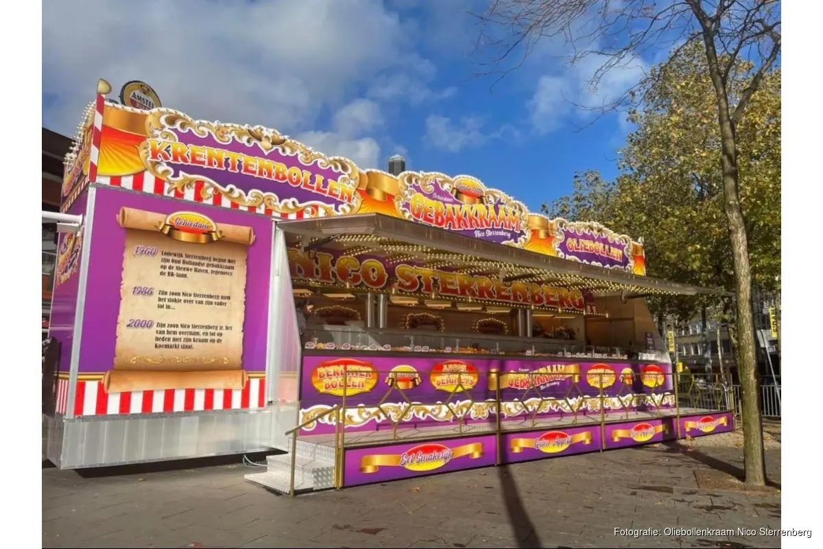 De Schiedamse oliebollenkraam viert nog een jubileum. Het is voor het 25-ste jaar dat Nico Sterrenberg (43) aan het roer staat van deze oliebollenkraam, die 65 jaar geleden door zijn opa Lodewijk en oma Elisabeth werd begonnen. In 1986 gingen vader Nico en moeder Annie ermee verder en tegenwoordig runnen Nico en zijn echtgenote Willemien de oliebollenkraam.