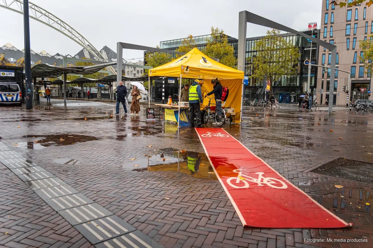 ROTTERDAM - Op de Blaak ter hoogte van station Blaak houdt de Fietsersbond een actie voor reparatie van fietsverlichting. Fietsers kunnen gratis hun fietsverlichting laten controleren en indien nodig repareren.